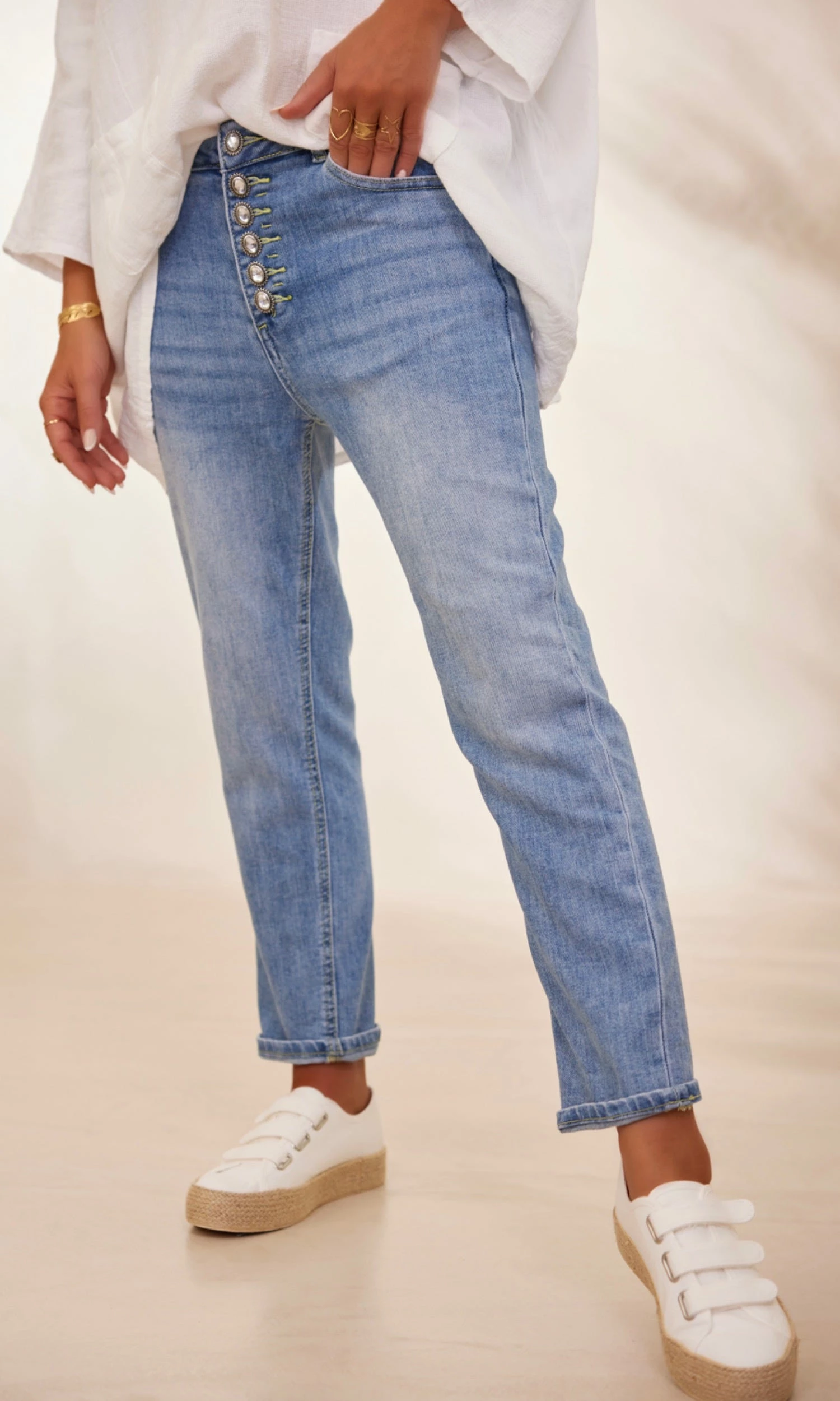 - Fermeture à l’avant avec boutons fantaisies apparents