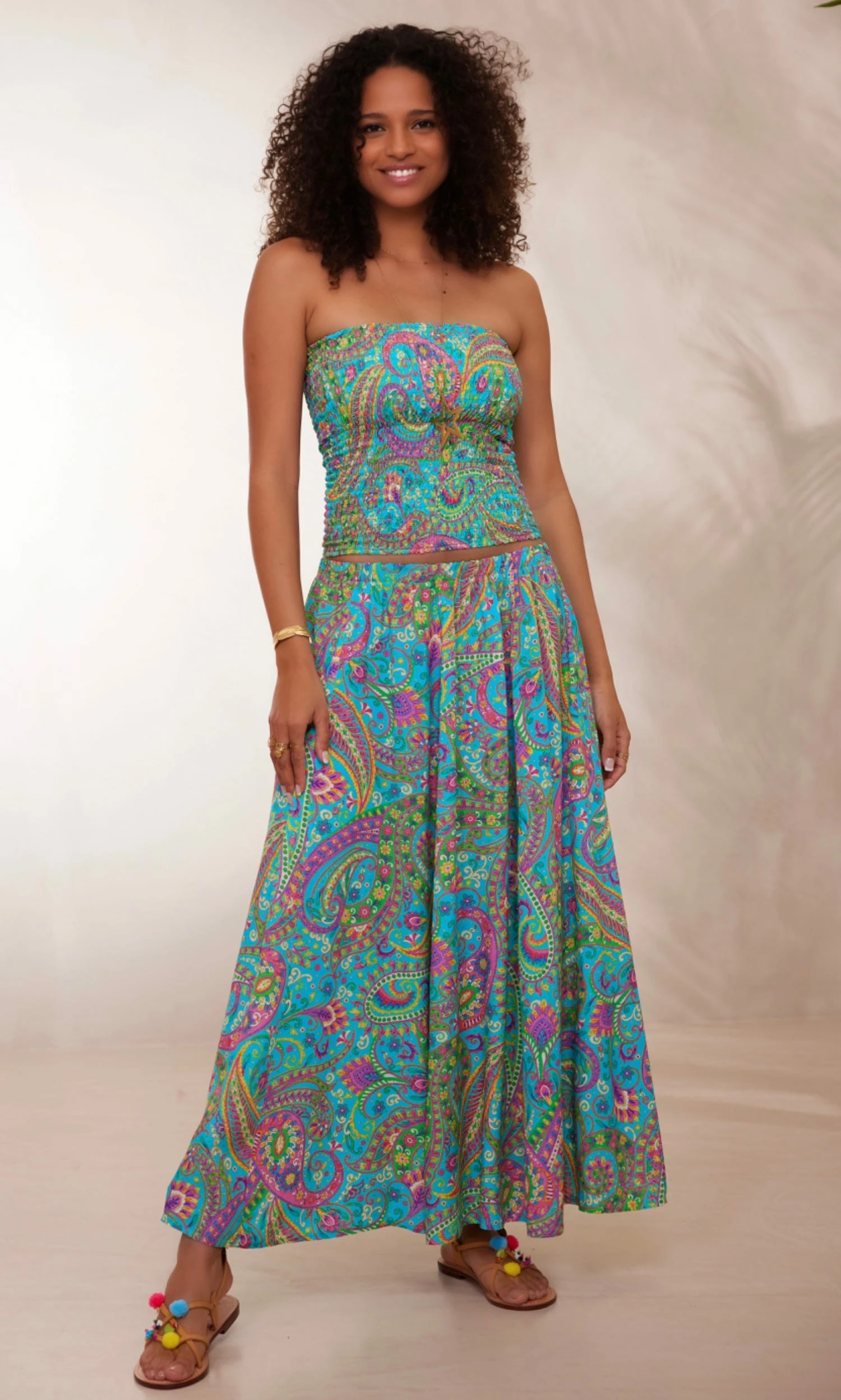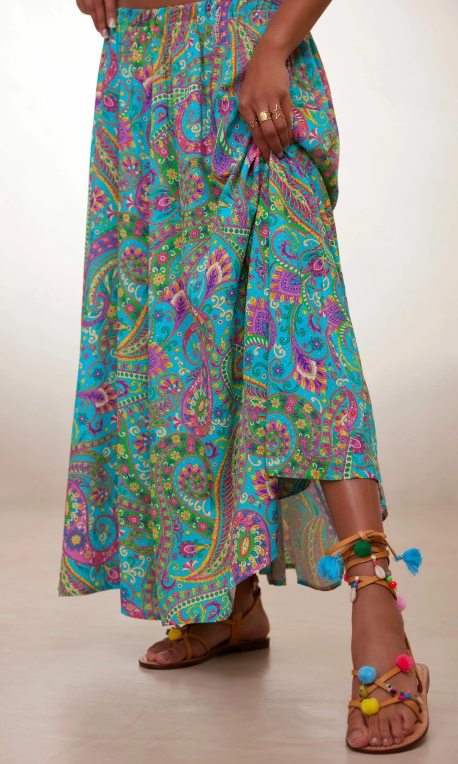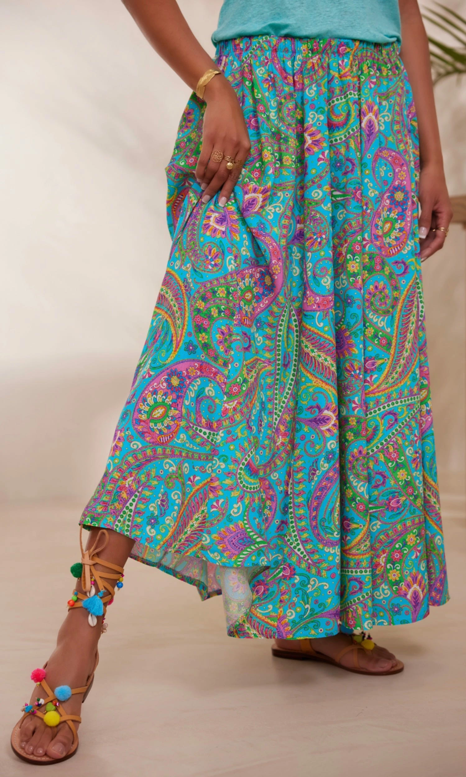 Jupon Ayron Vert Turquoise Cachemire Flower