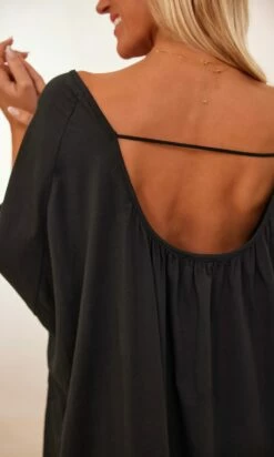 - Encolure ronde devant et décolleté rond généreux dans le dos avec lien