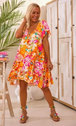 Petite Robe Tess Orange Bird Of Paradise