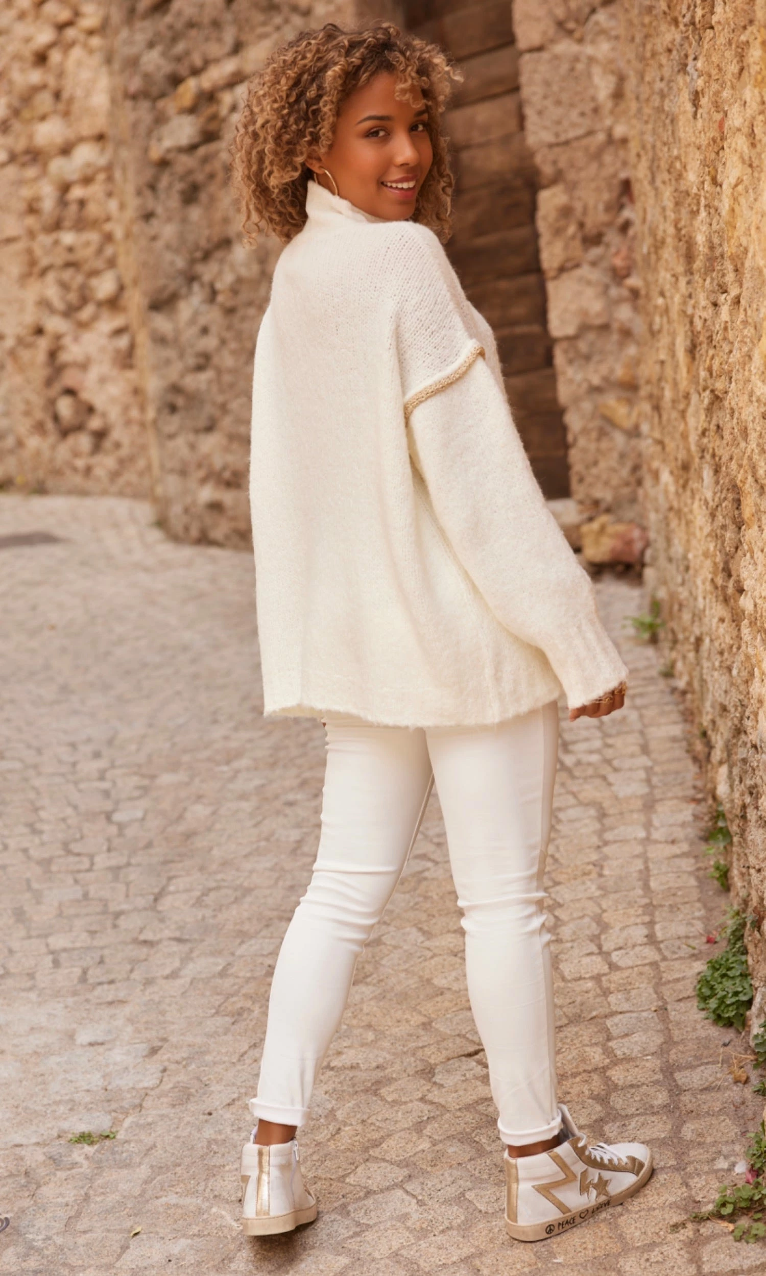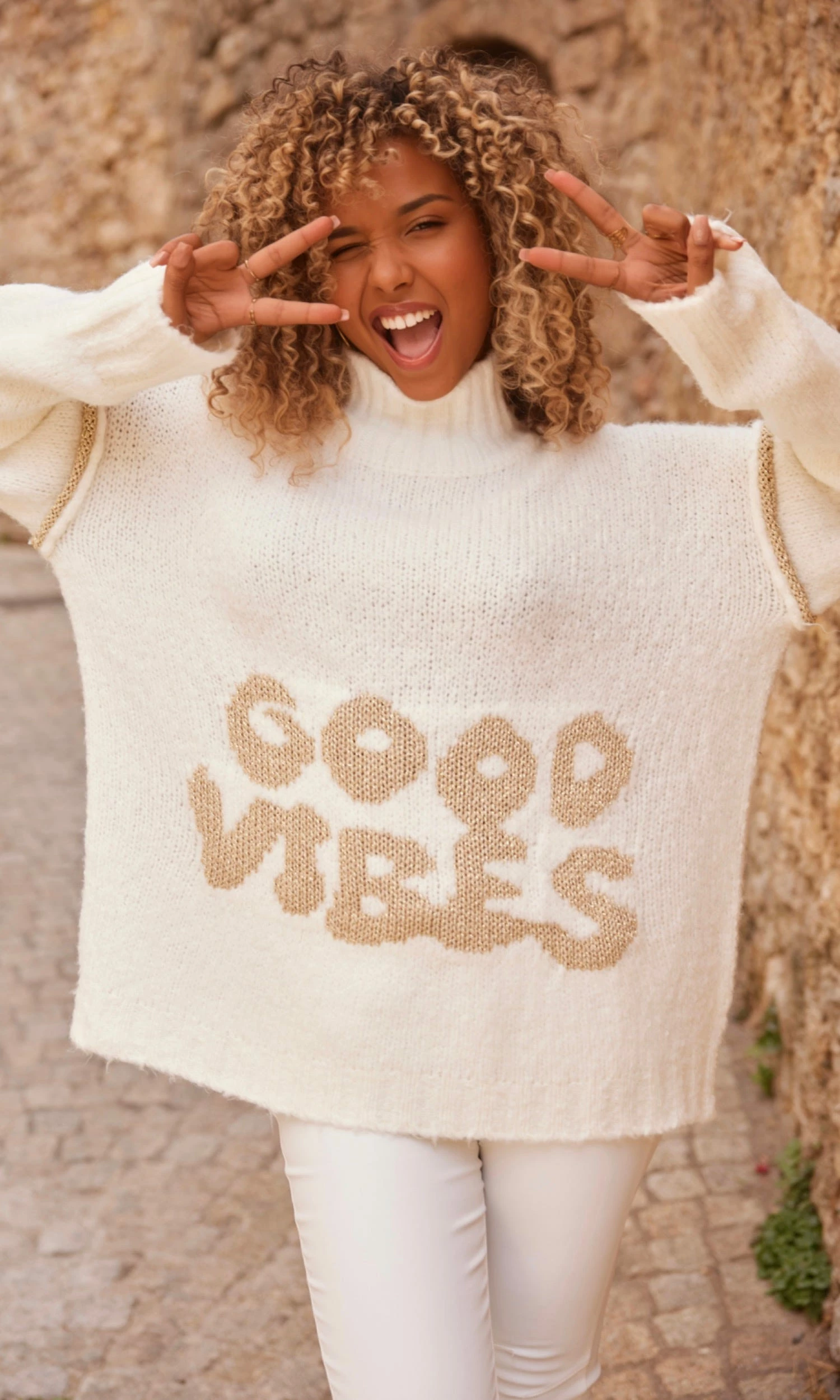 Pull Amaury Blanc Cassé Good Vibes Doré