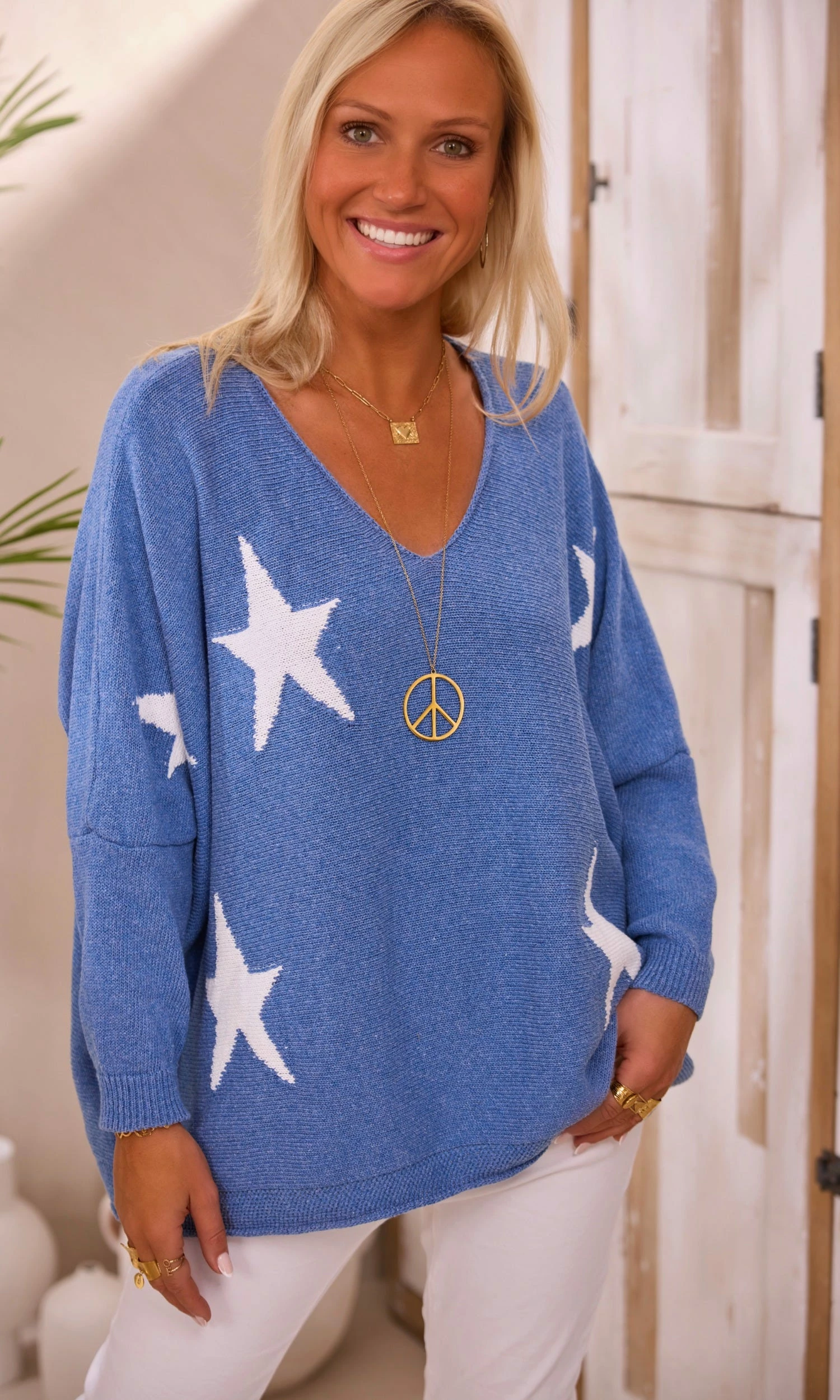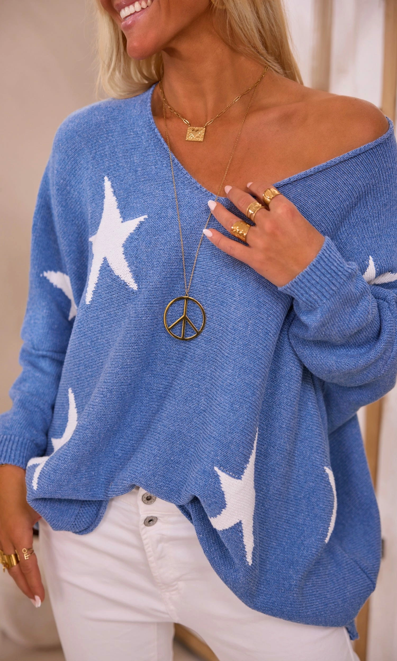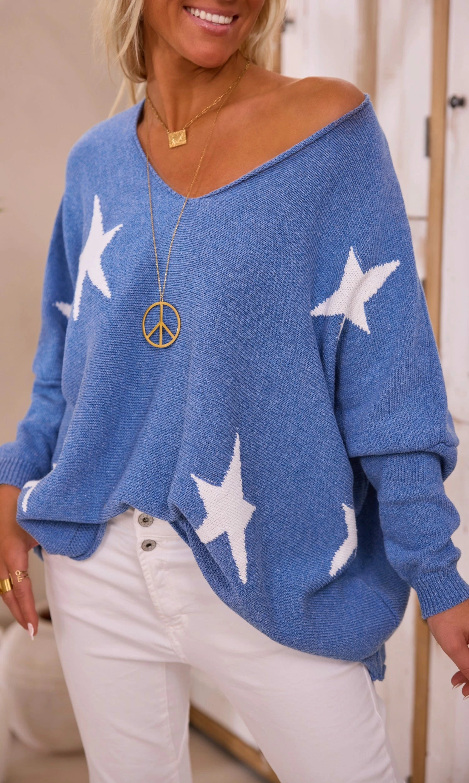 Pull Arsène Oversize Bleu Jean Stars Blanc