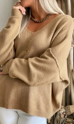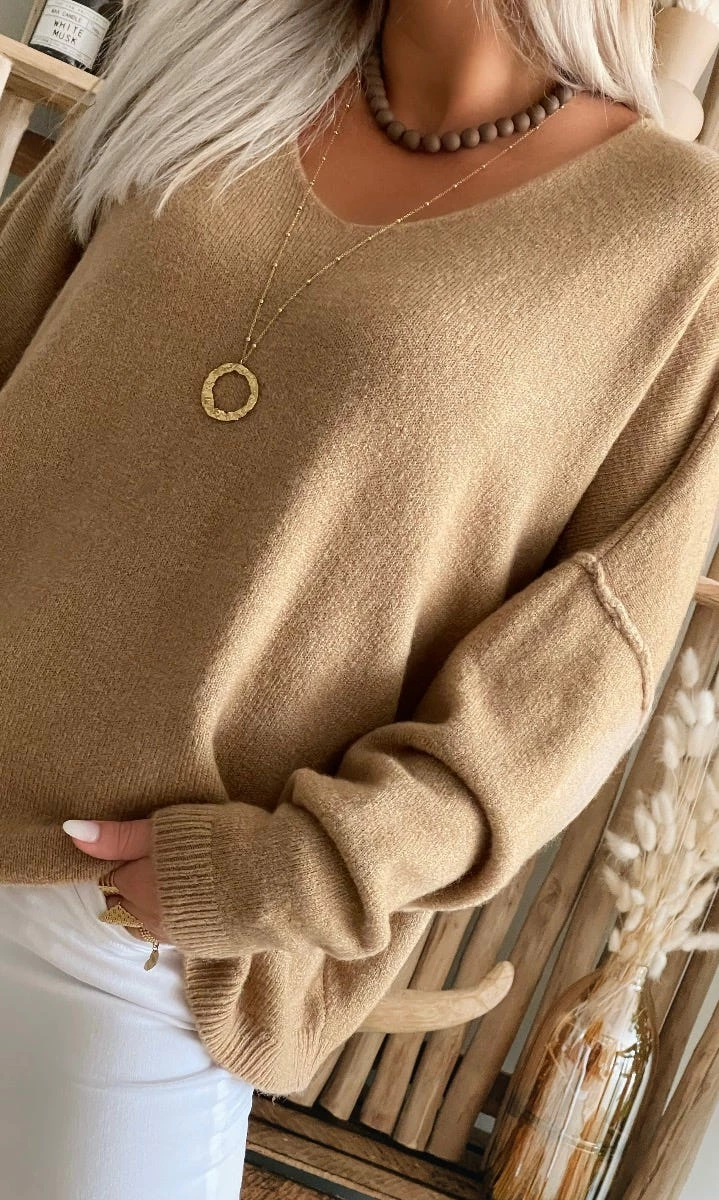 - Manches longues avec emmanchures tombantes et coutures apparentes
