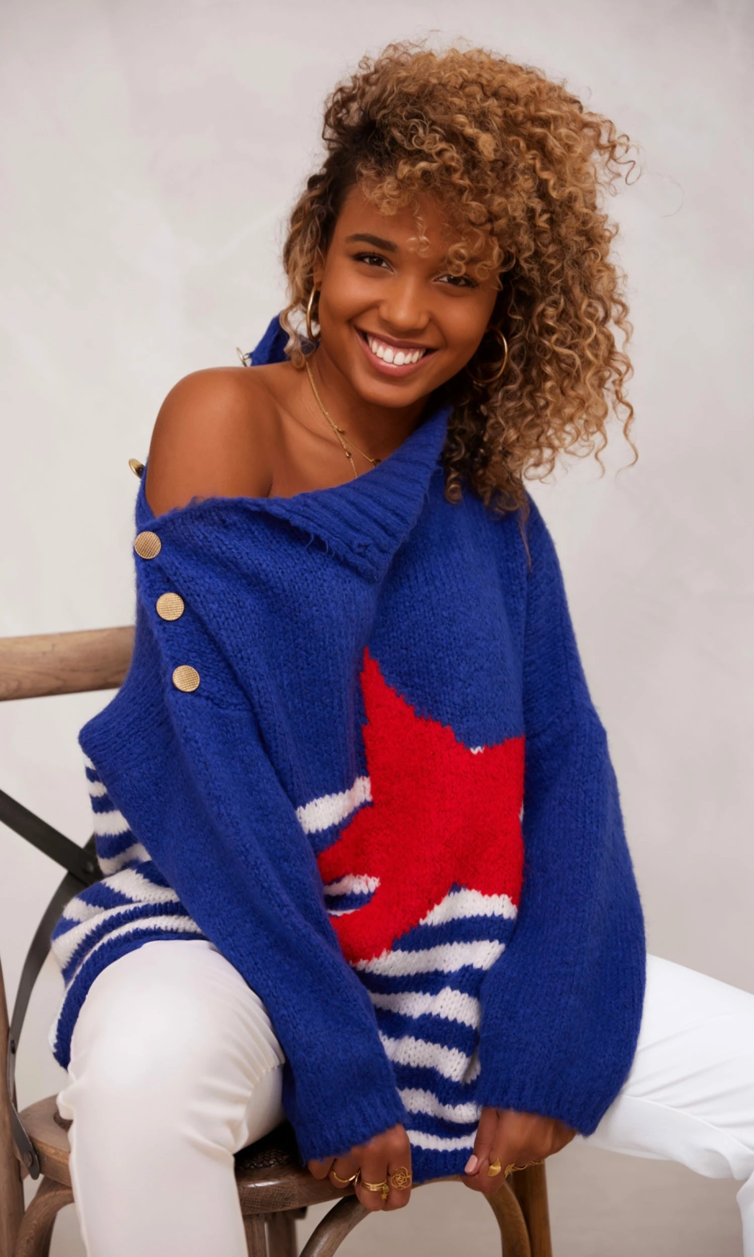 Pull Loann Bleu Marine Marinière Blanc Star Rouge
