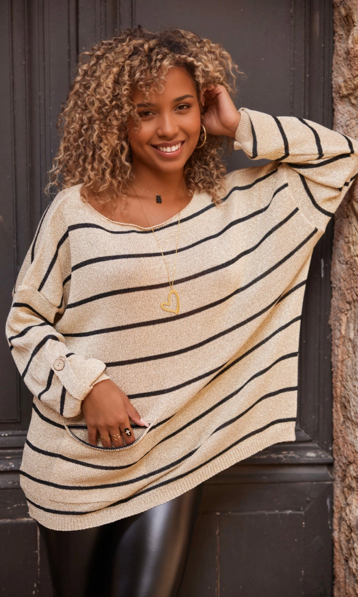 Pull Mika Oversize Doré Irisé Marinière Noir