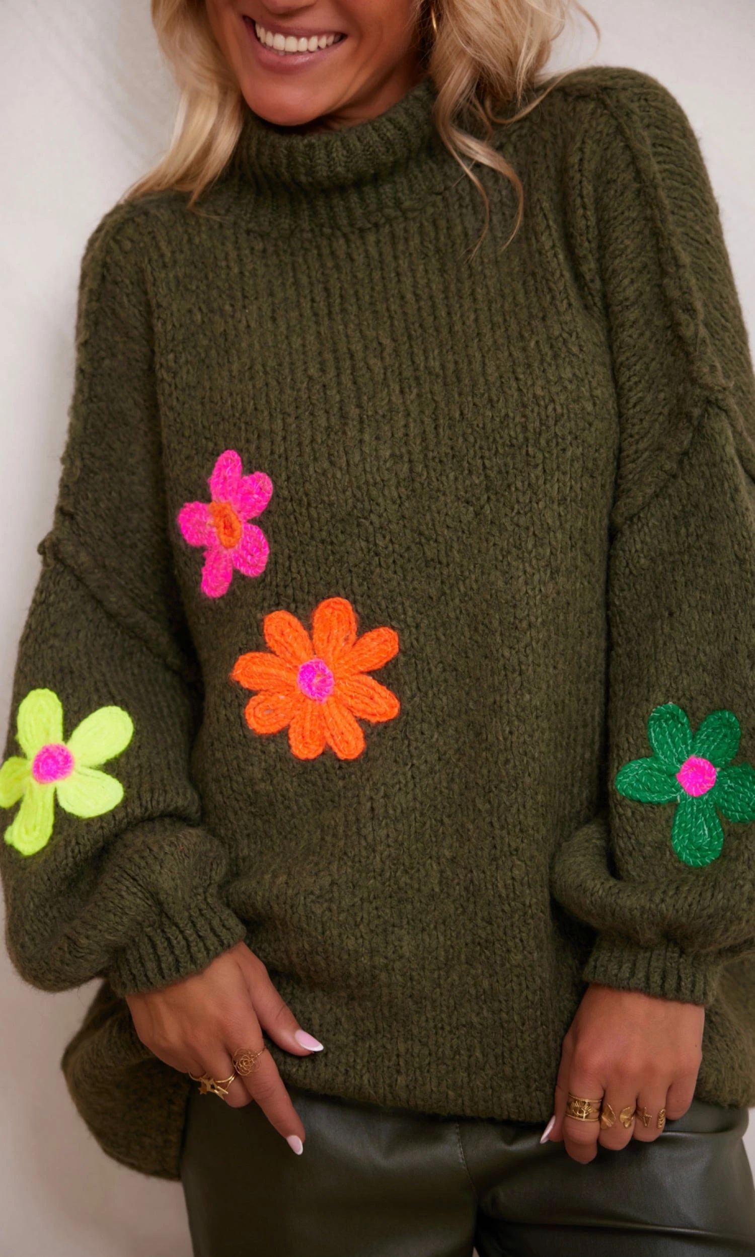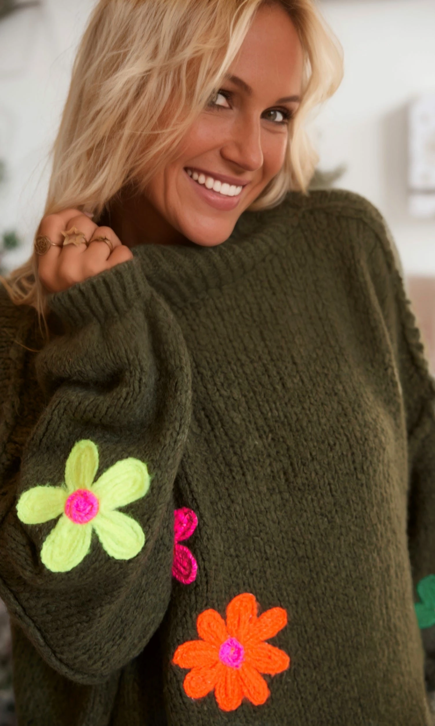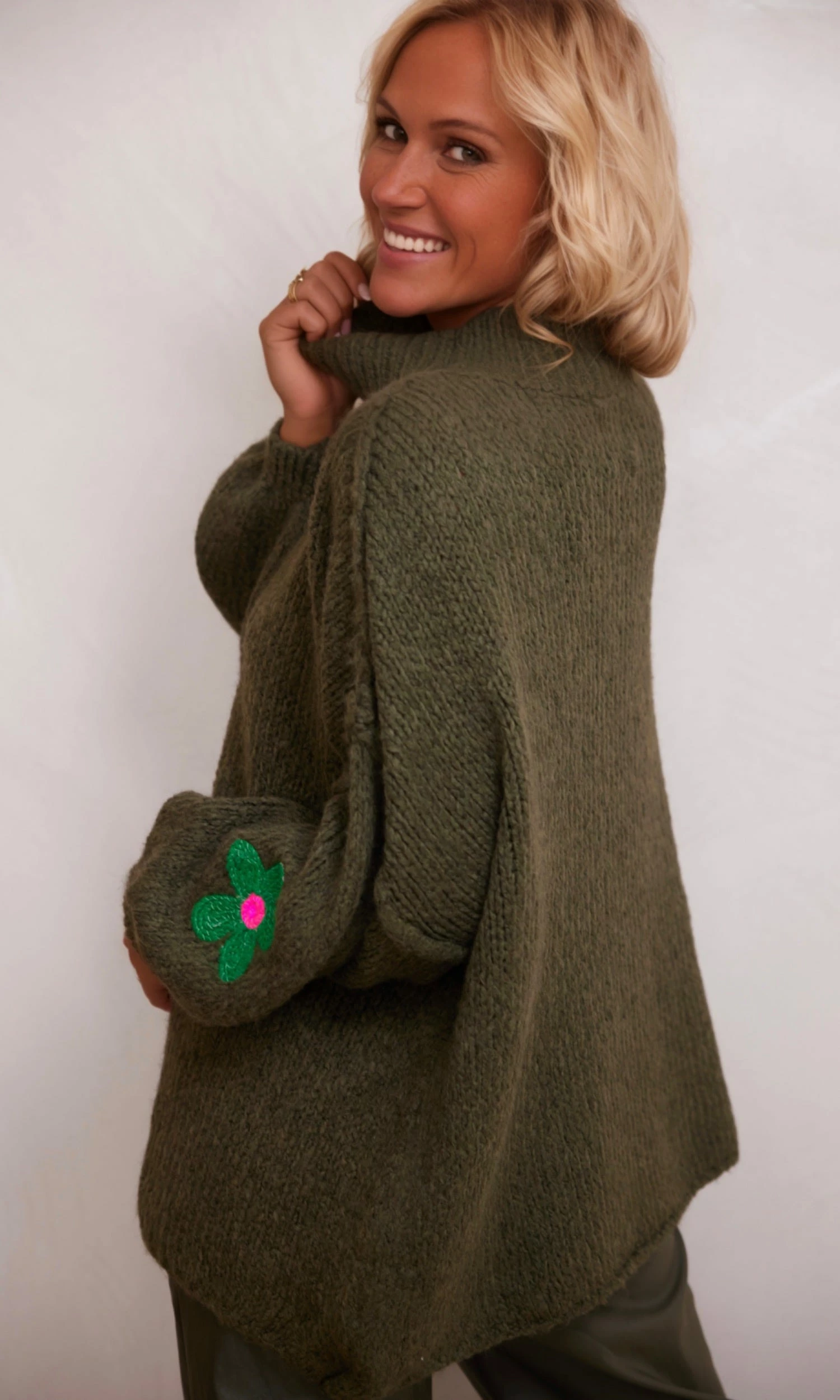 - Fleurs brodés et tricotés sur le devant et sur les manches