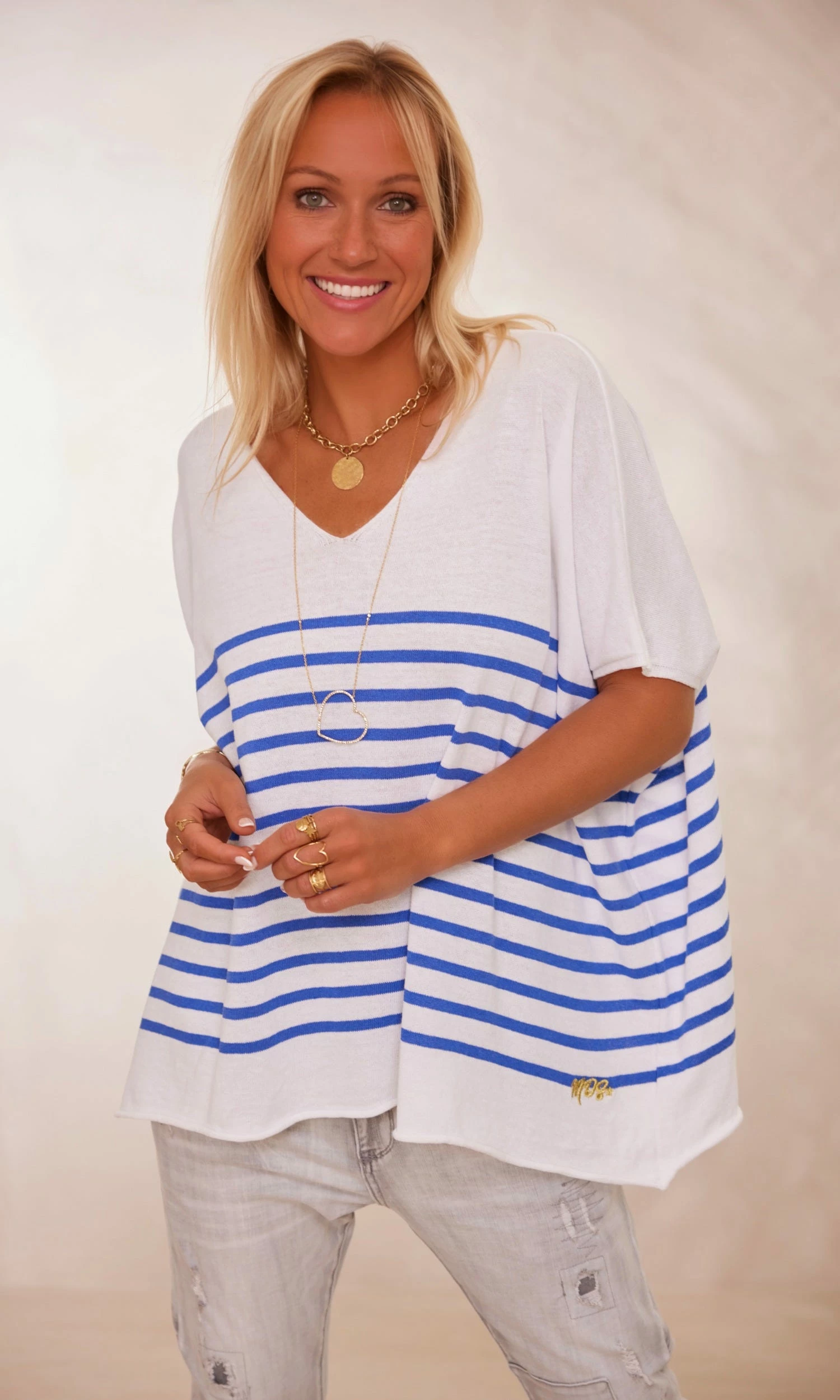 Pull Yann MC Oversize Blanc Marinière Bleu Electrique