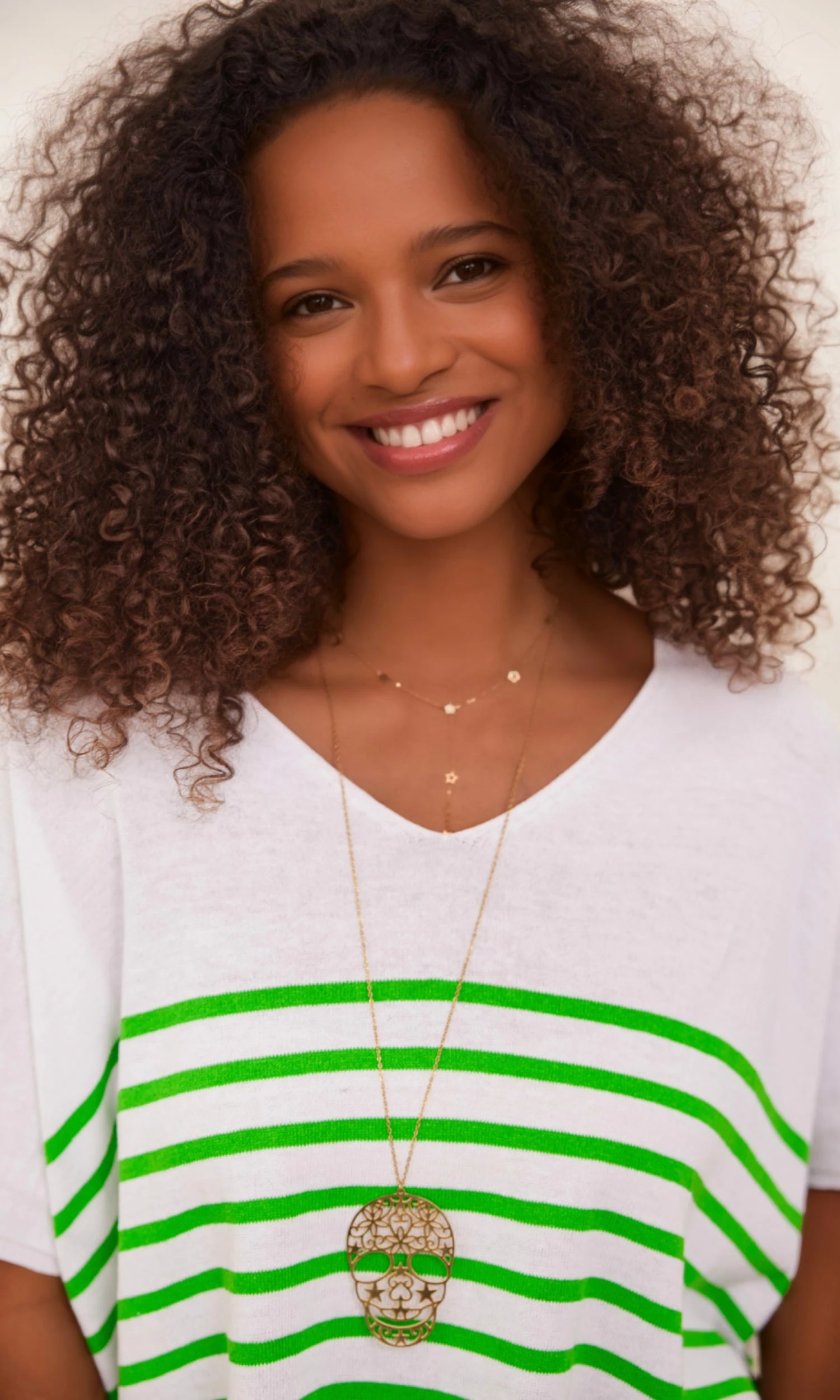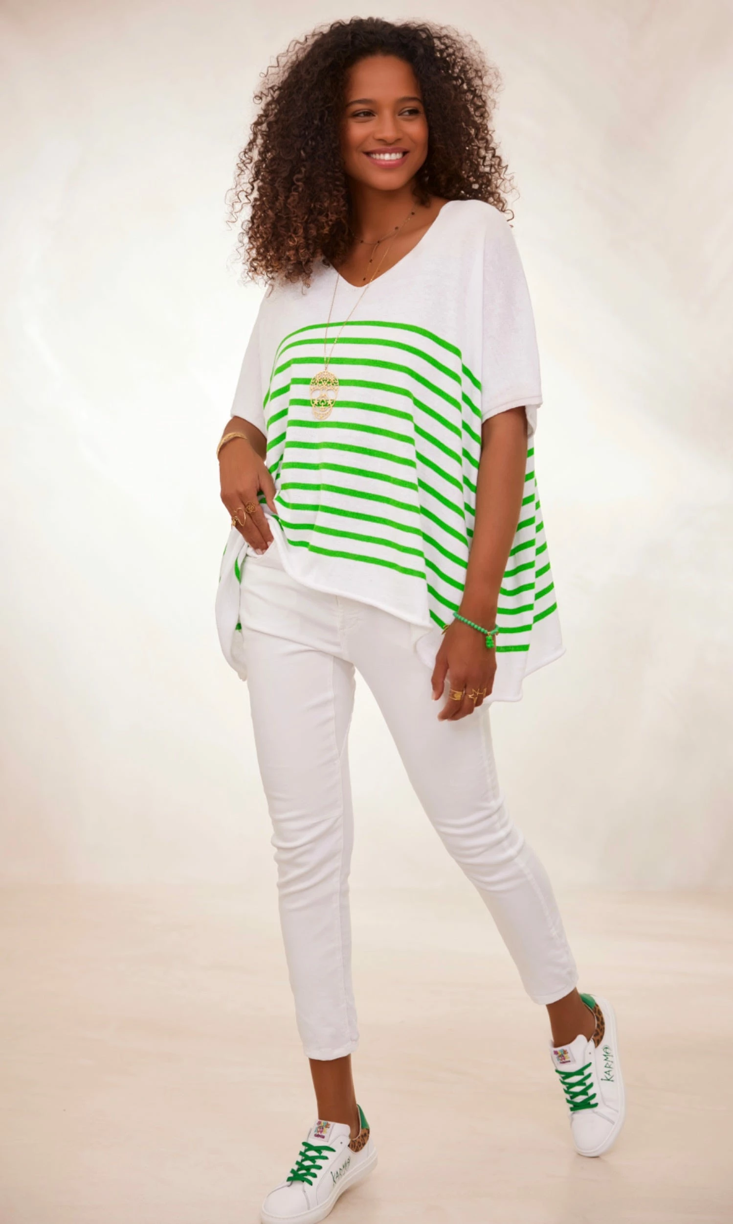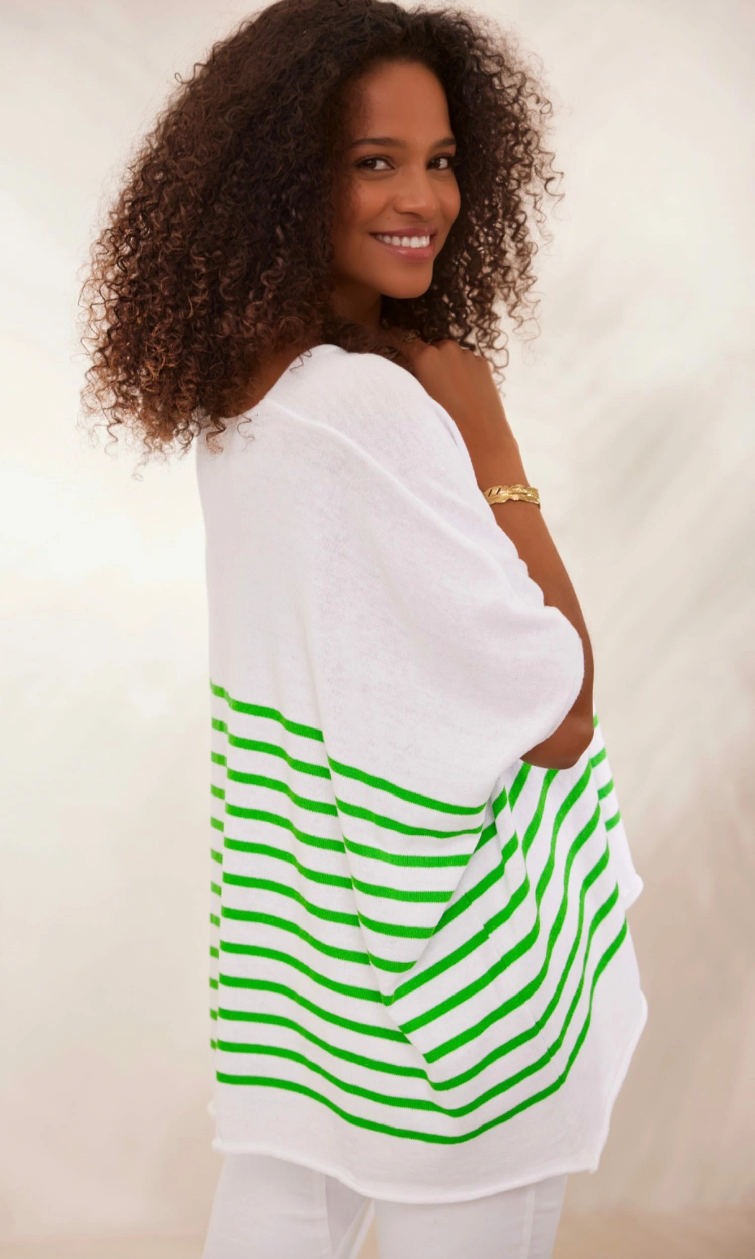Pull Yann MC Oversize Blanc Marinière Vert Brésil