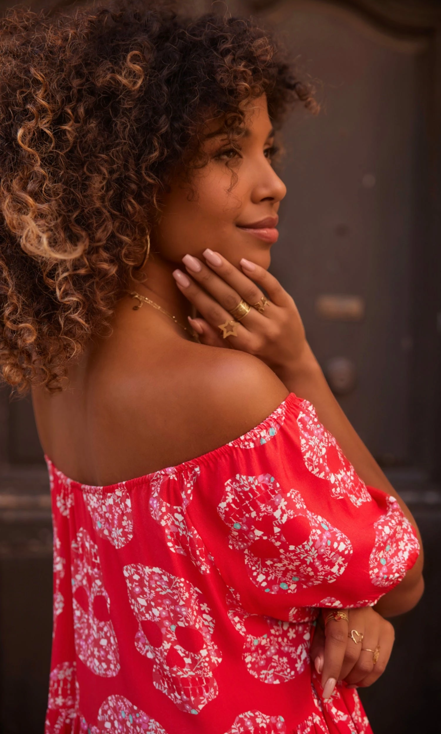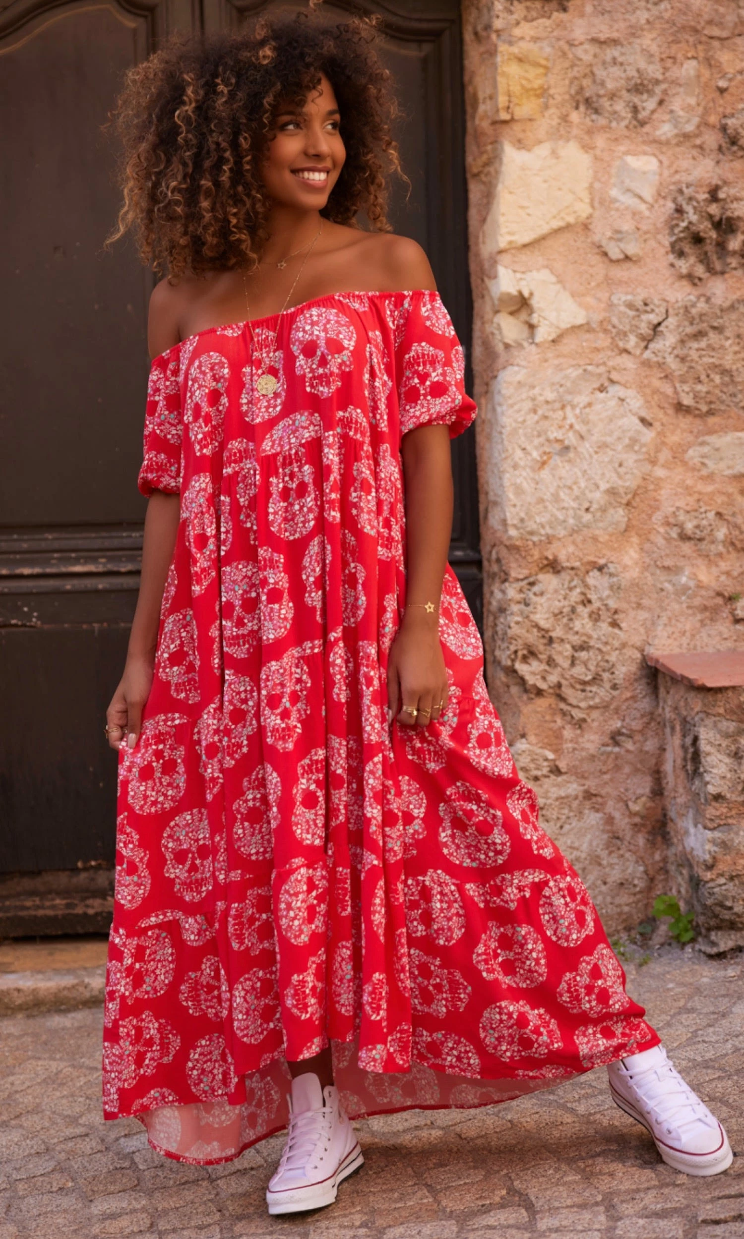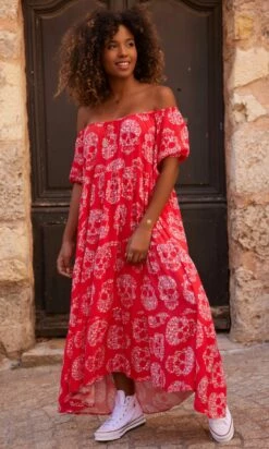 Robe Daria Rouge Flower Skull