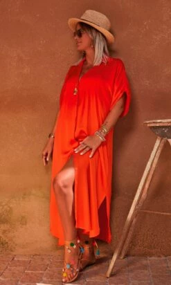 - Col chemise ouvert en V puis boutonnée sur toute sa hauteur