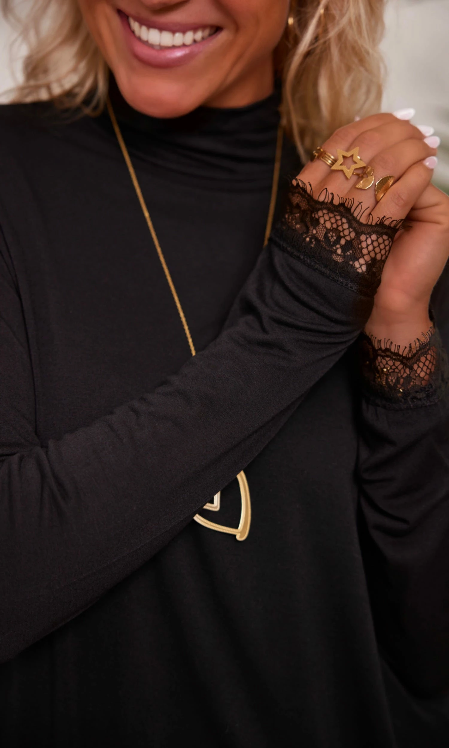 - Finition dentelle aux poignets et en partie basse
