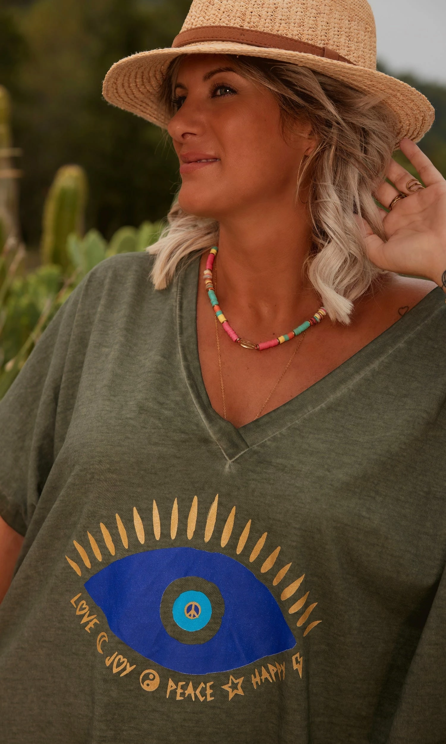 T-Shirt Iloé Oversize Kaki Lucky Eye