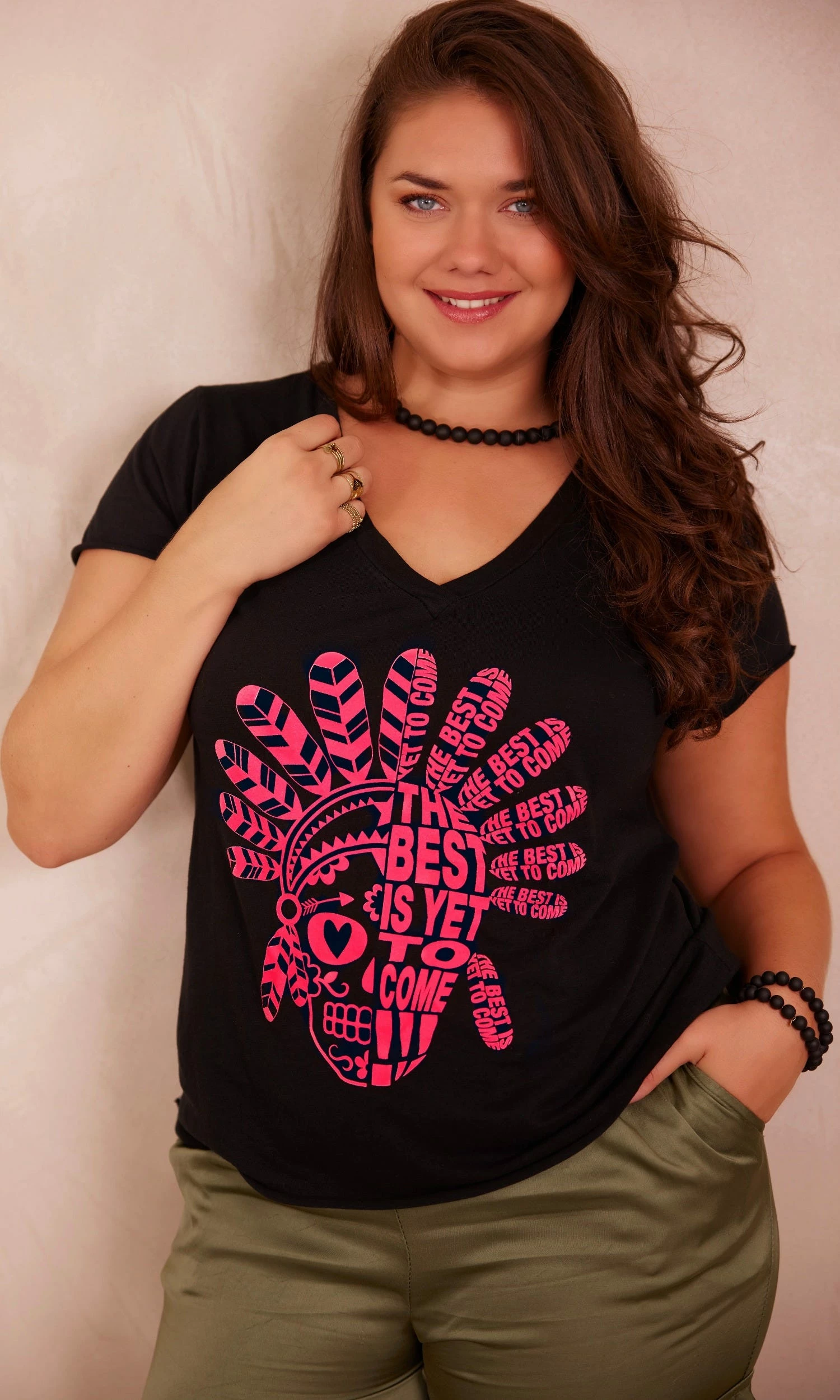 T-Shirt Magda Noir The Best Skull Rose Fluo