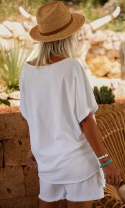 T-Shirt Solene Oversize Blanc Isalove Bleu Turquoise