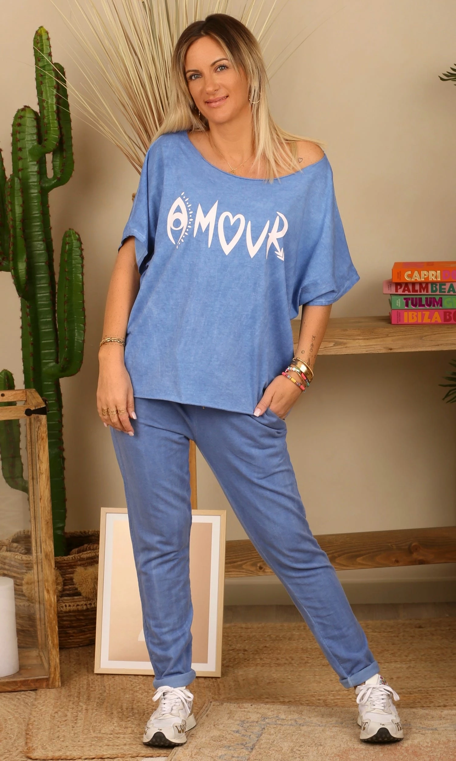 T-Shirt Solene Oversize Bleu Jean Amour Blanc