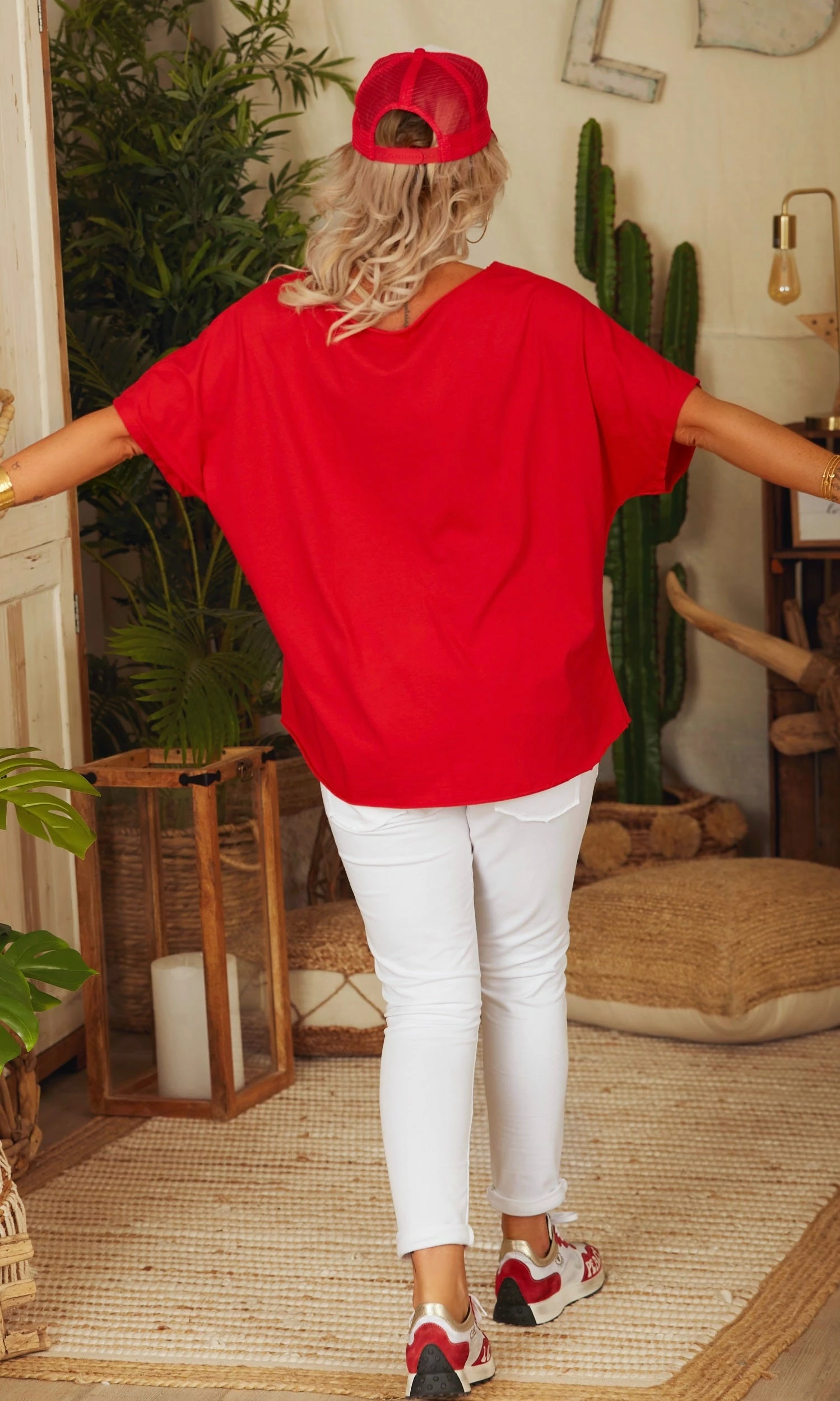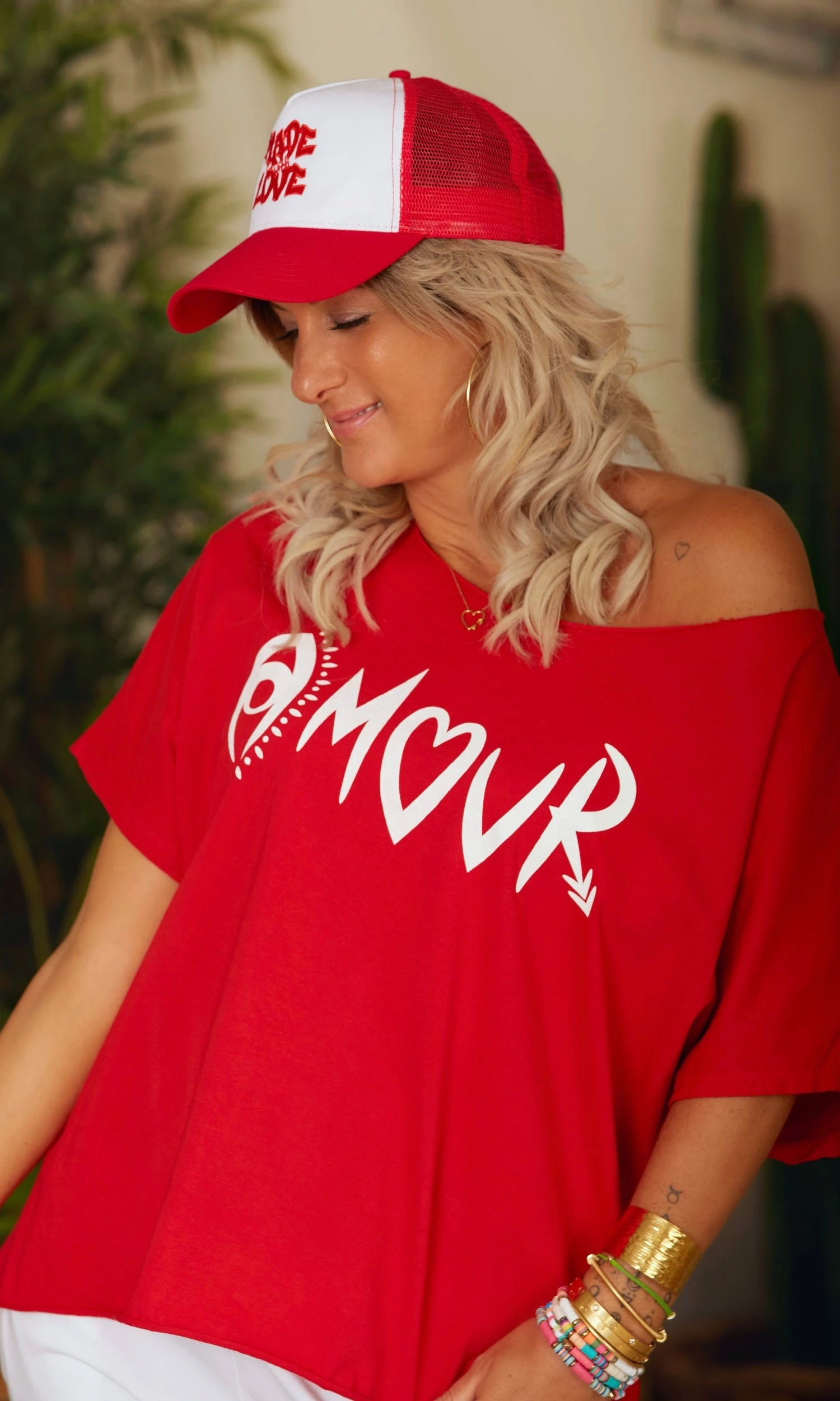 T-Shirt Solene Oversize Rouge Amour Blanc