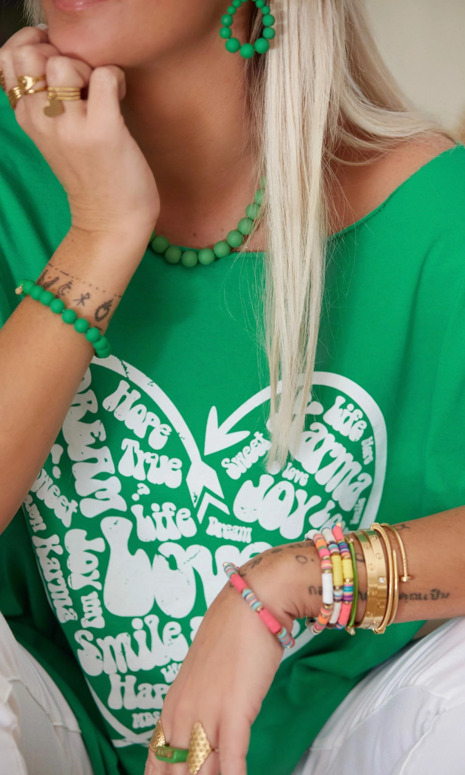 T-Shirt Solene Oversize Vert Brésil Heart Arrow Blanc